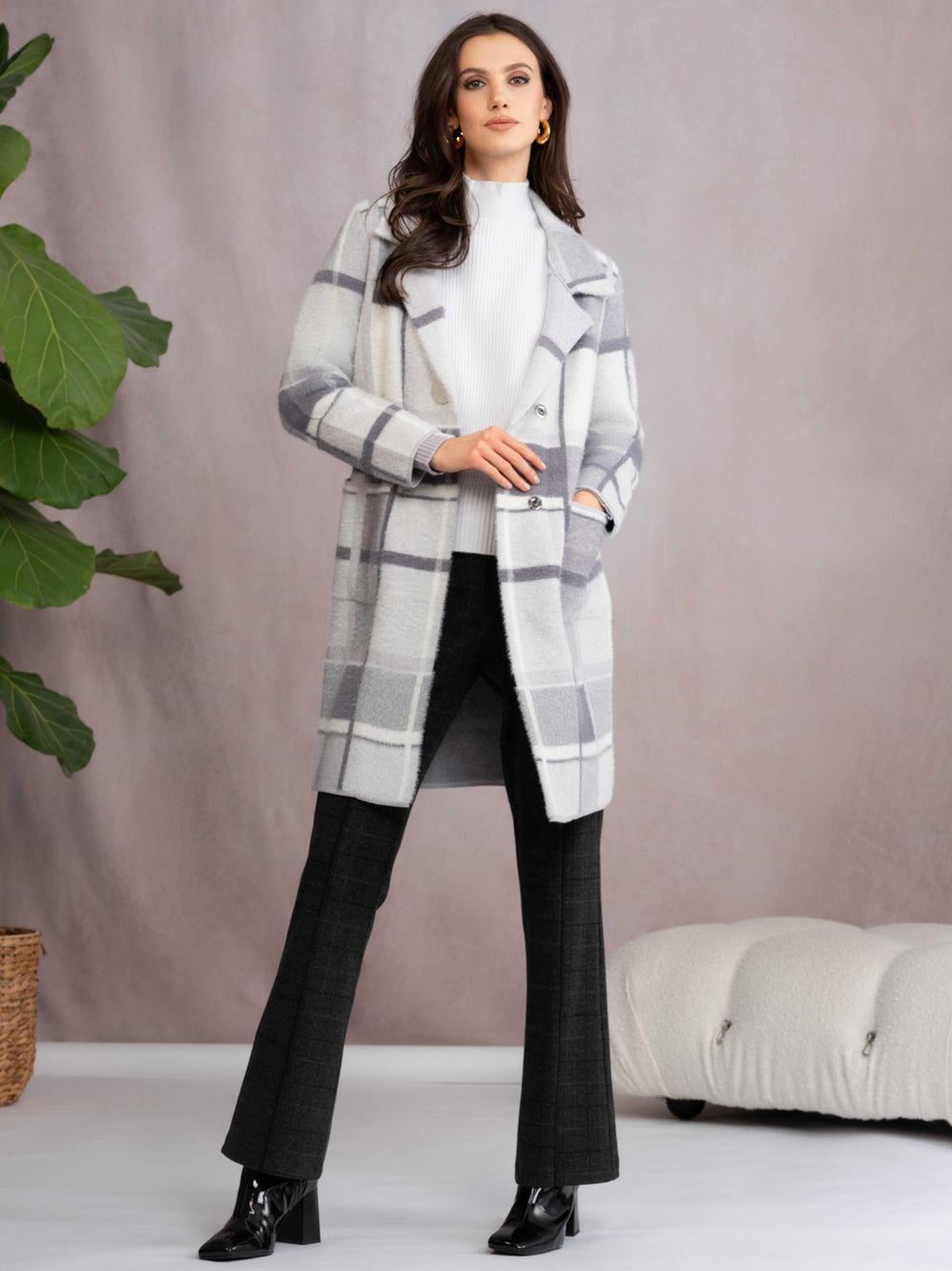 Get the look of a coat with the feel of a cardigan in the luxurious sweatercoat that features a sophisticated muted plaid pattern with decorative button and snap front closures, styled in a super soft weighty plush knit.