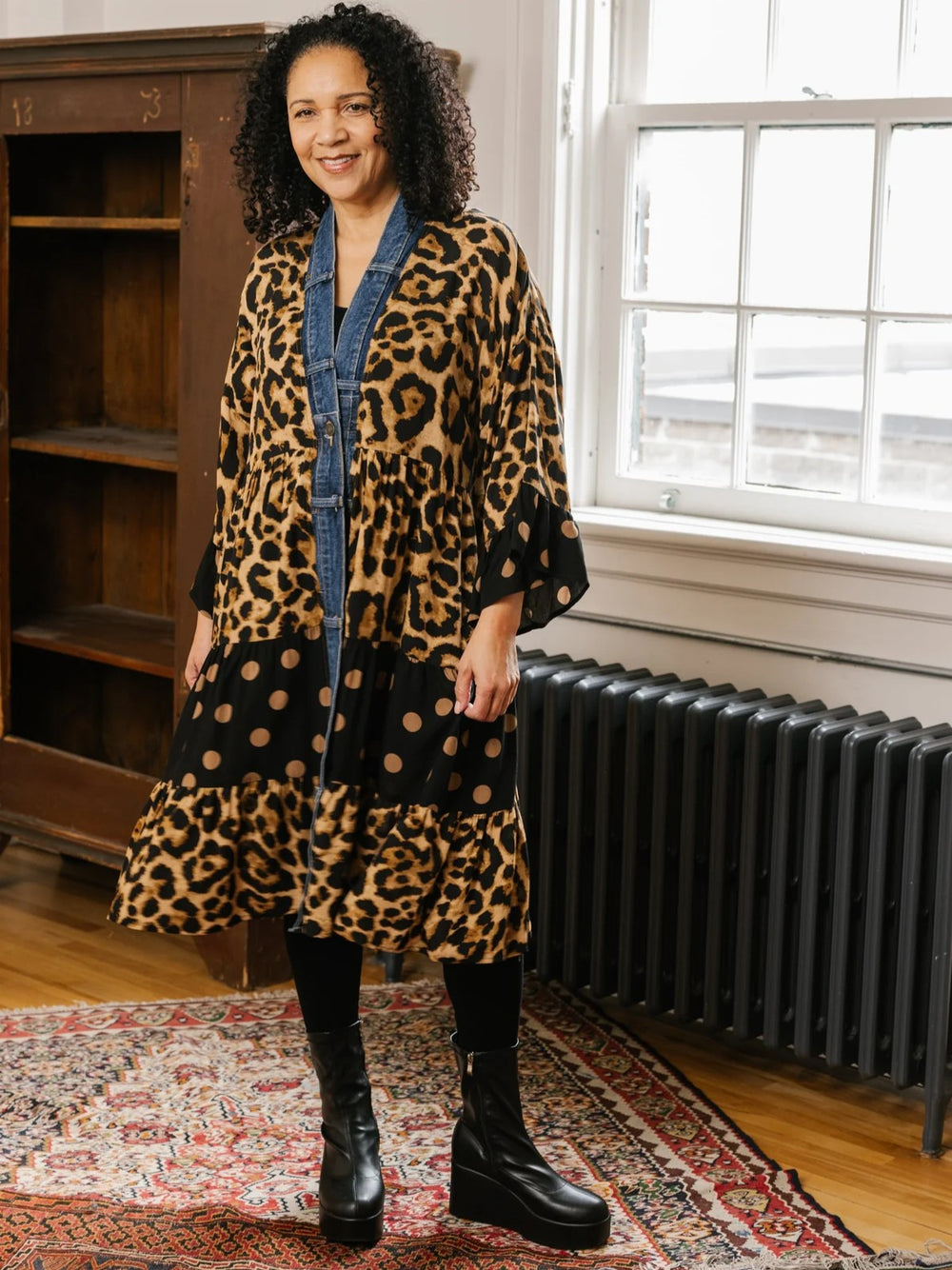 Ying Leopard Mix Denim Detail Duster Cardigan
