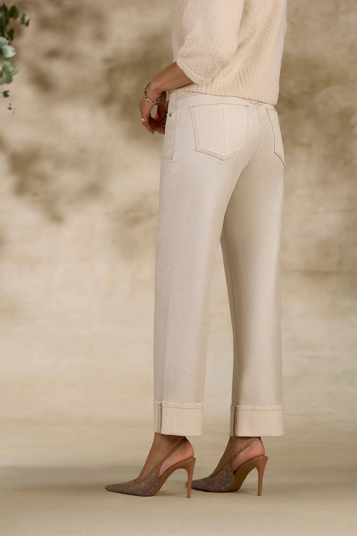 The Almond High Rise Boyfriend Jean by Wit & Wisdom is fitted through the hips with a more relaxed, slightly slouchy fit from the mid-thigh to the leg opening with a raw edge wide cuff, styled in blanched almond with a shiny finish.