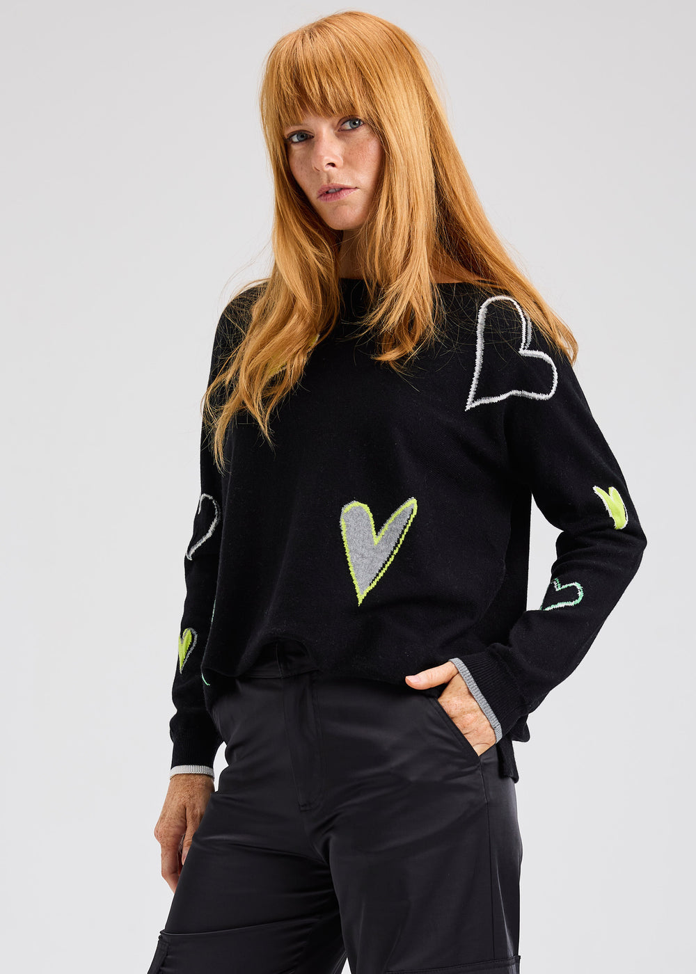 The stylish hearts intarsia sweater from Zaket & Plover is made in a lightweight, soft and luxurious Cashmere and Cotton blend knit featuring fun heart motifs with a pop of colour.