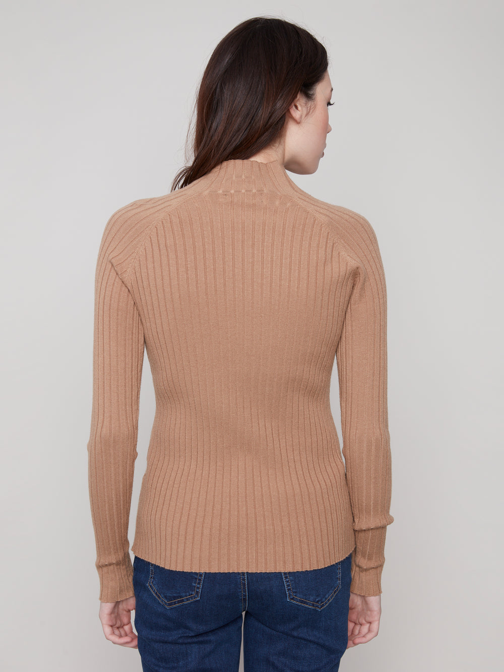 A fashionable must-have essential for your wardrobe is the mock neck sweater from Charlie B, designed in a stylish drop needle ribbed knit with raglan sleeves.