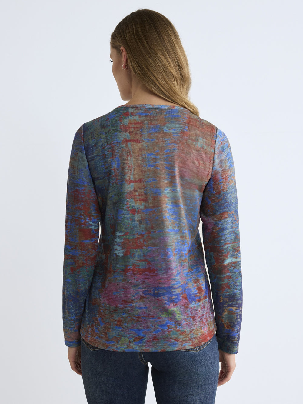 The super soft and comfortable top from FDJ French Dressing has a V-neck with button accents and long sleeves, designed in a multicoloured abstract print.