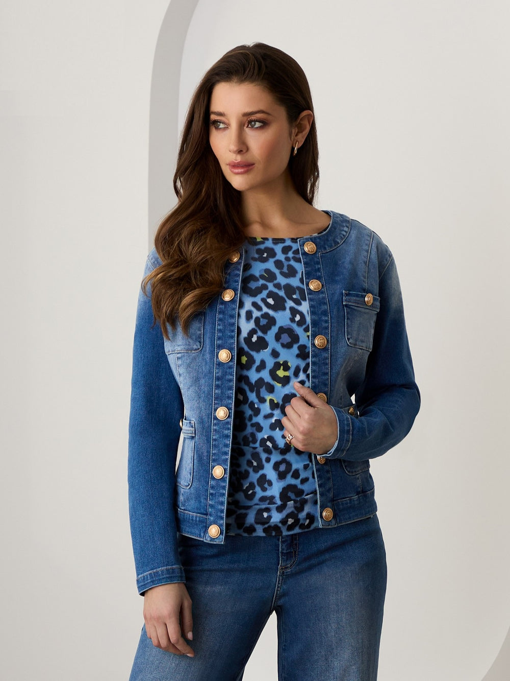Chic animal print top is right on trend, styled with a round neckline and long sleeves in a mix of blues that is perfect to wear with your favourite jeans, on its own or layered under a jacket.