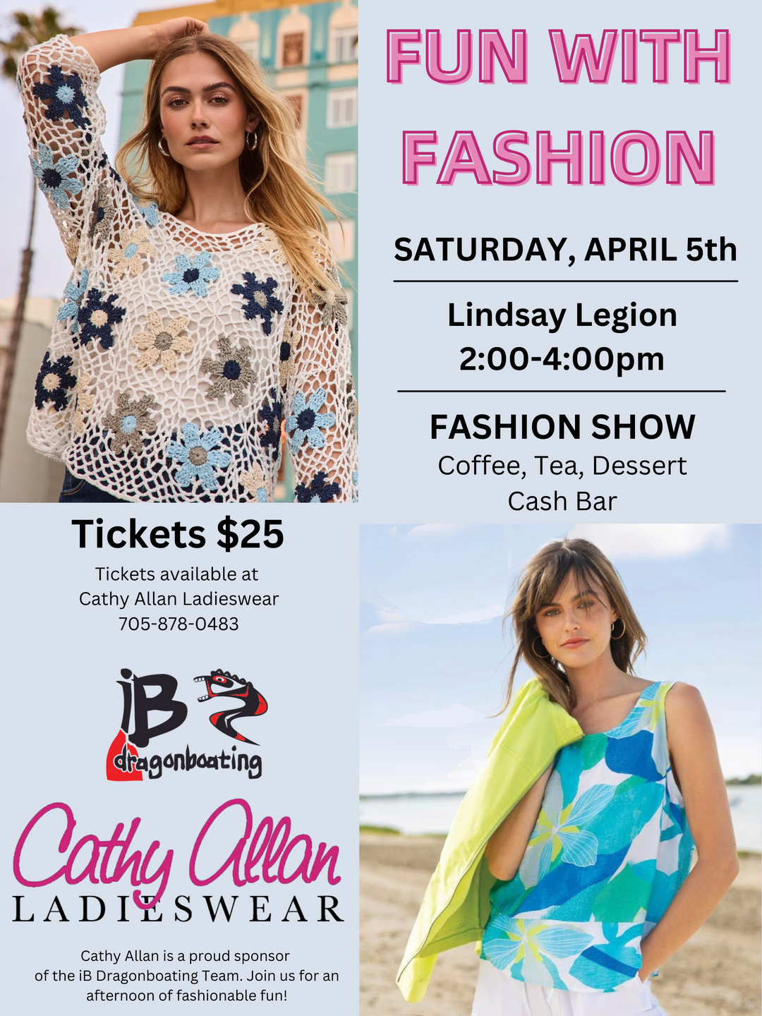 Join us at the Linsday Legion for a Spring Fashion Show on Saturday, April 5th, 2-4pm.